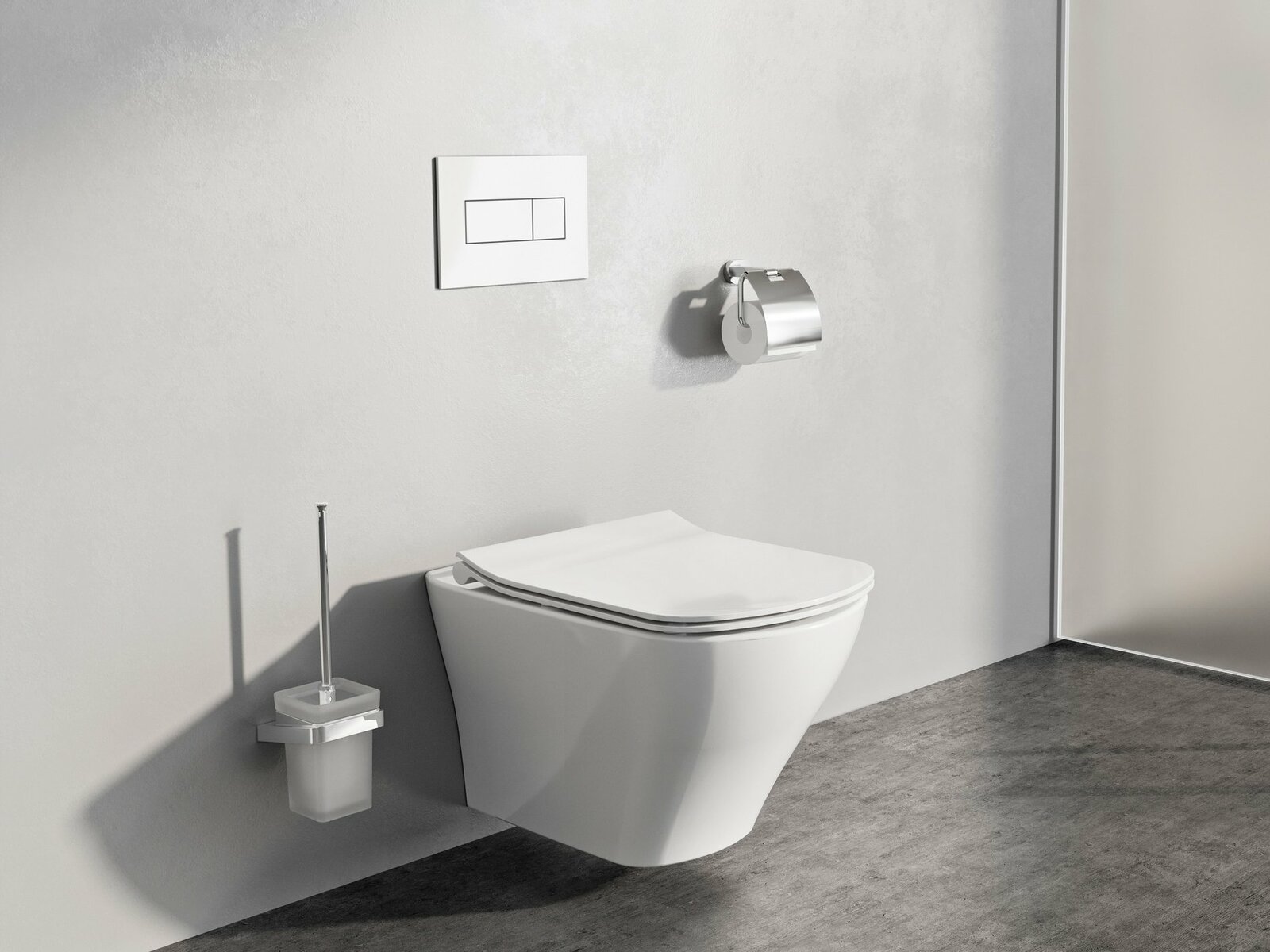 Ovládací tlačítko splachování Uni je určeno prozávěsné WC (s předstěnovým instalačním modulem). Plastové tlačítko s povrchovou úpravou odolnou proti poškrábání je v bílém provedení.
