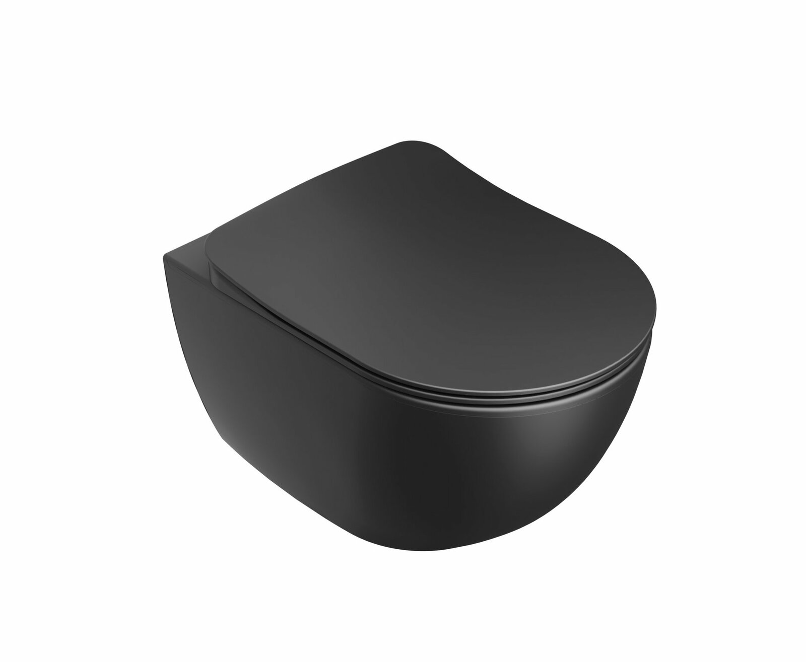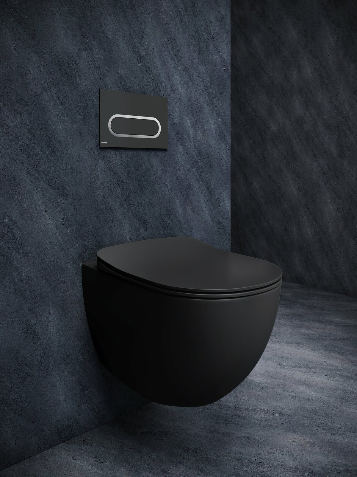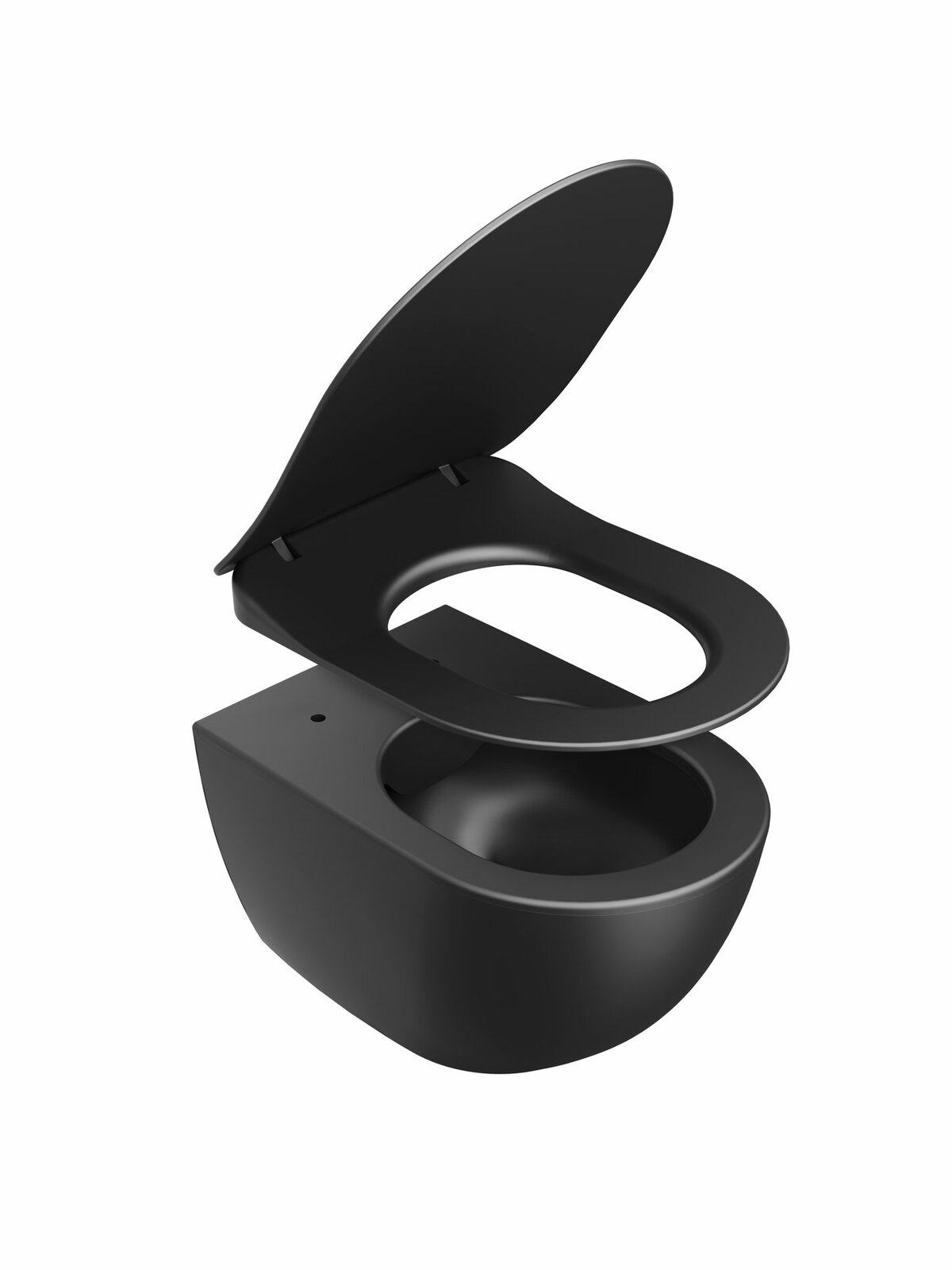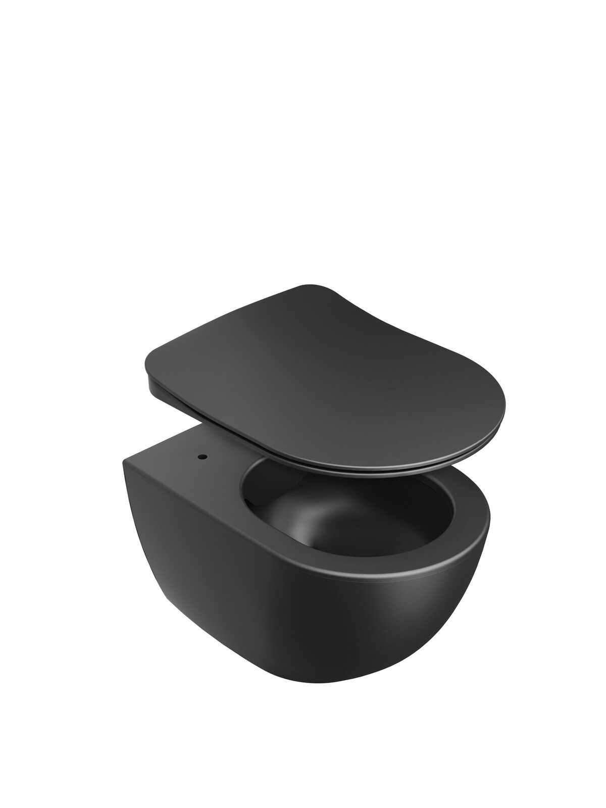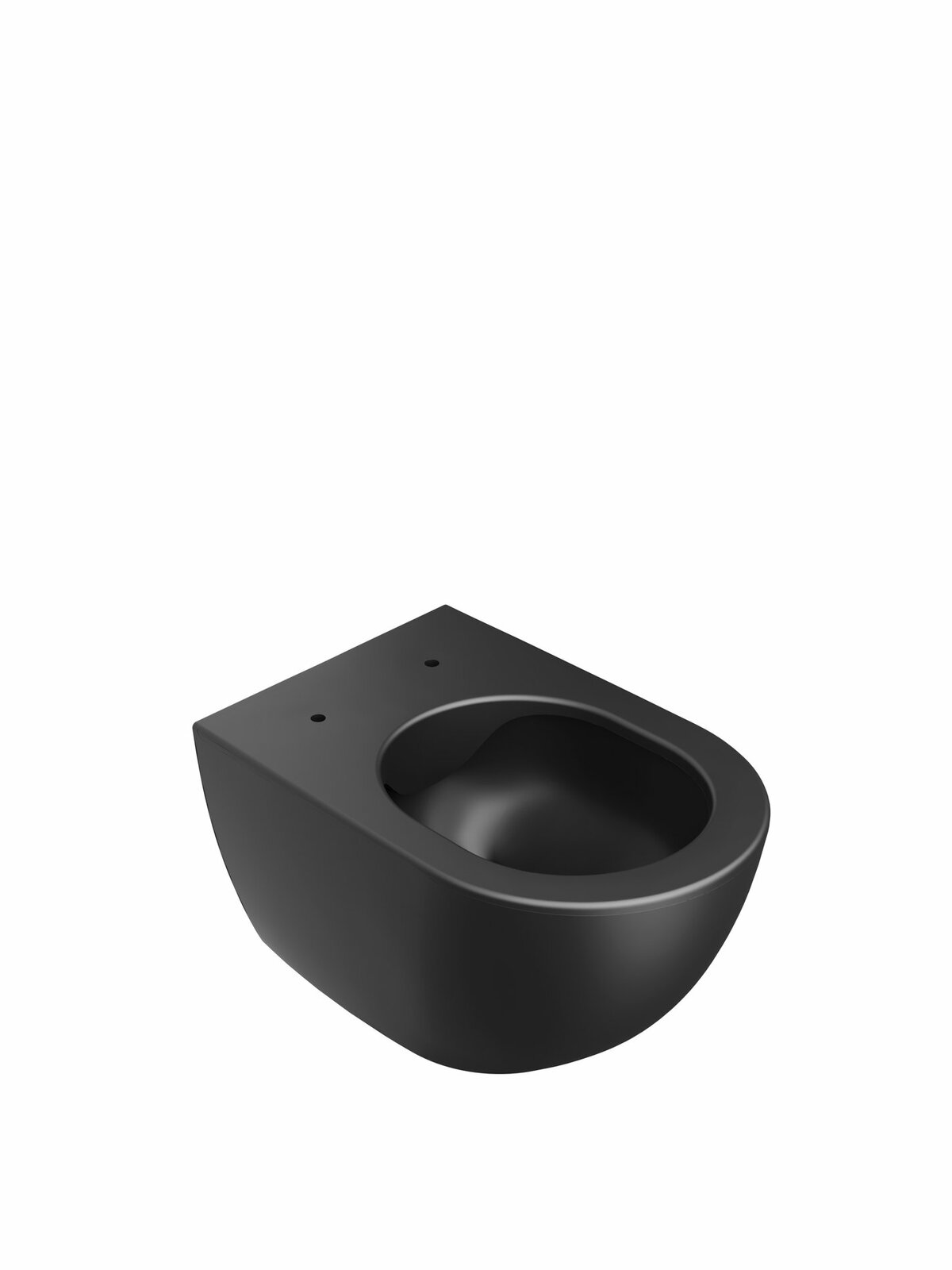 Kvalitní černý matný keramický materiál ve svěžím a domyšleném designu pro každý den. Konstrukce toalety bez oplachového lemu umožňuje spláchnutí celé plochy. WC je určeno k zavěšení na zeď.