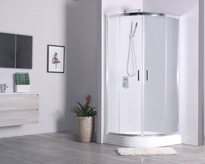 Čtvrtkruhový sprchový kout značky CERSANIT s hliníkovým profilem v chromovém provedení, doplněný dvoubodovými madly. Výplní je čiré sklo s povrchovou úpravou EASY CLEAN o síle 5 mm.