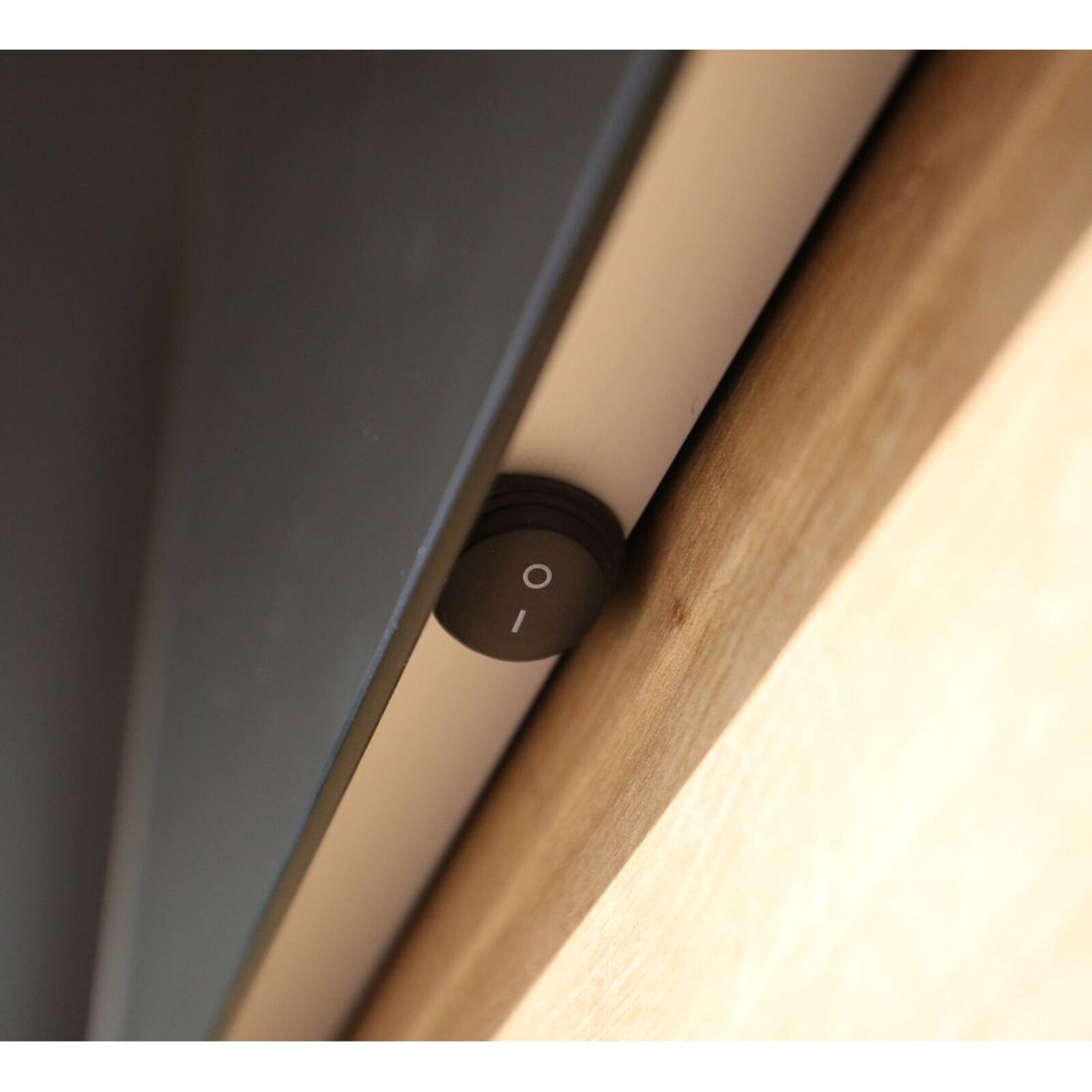 Podsvícený pruh: 40x3 cm, energetická třída E, se skrytým kolébkovým vypínačem v dolní části uprostřed.