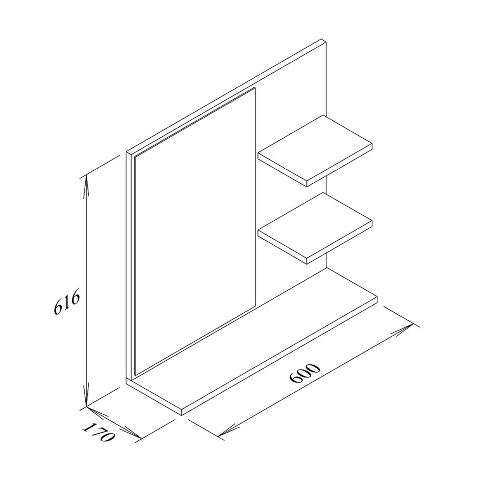 s praktickými poličkami, zrcadlo na desce