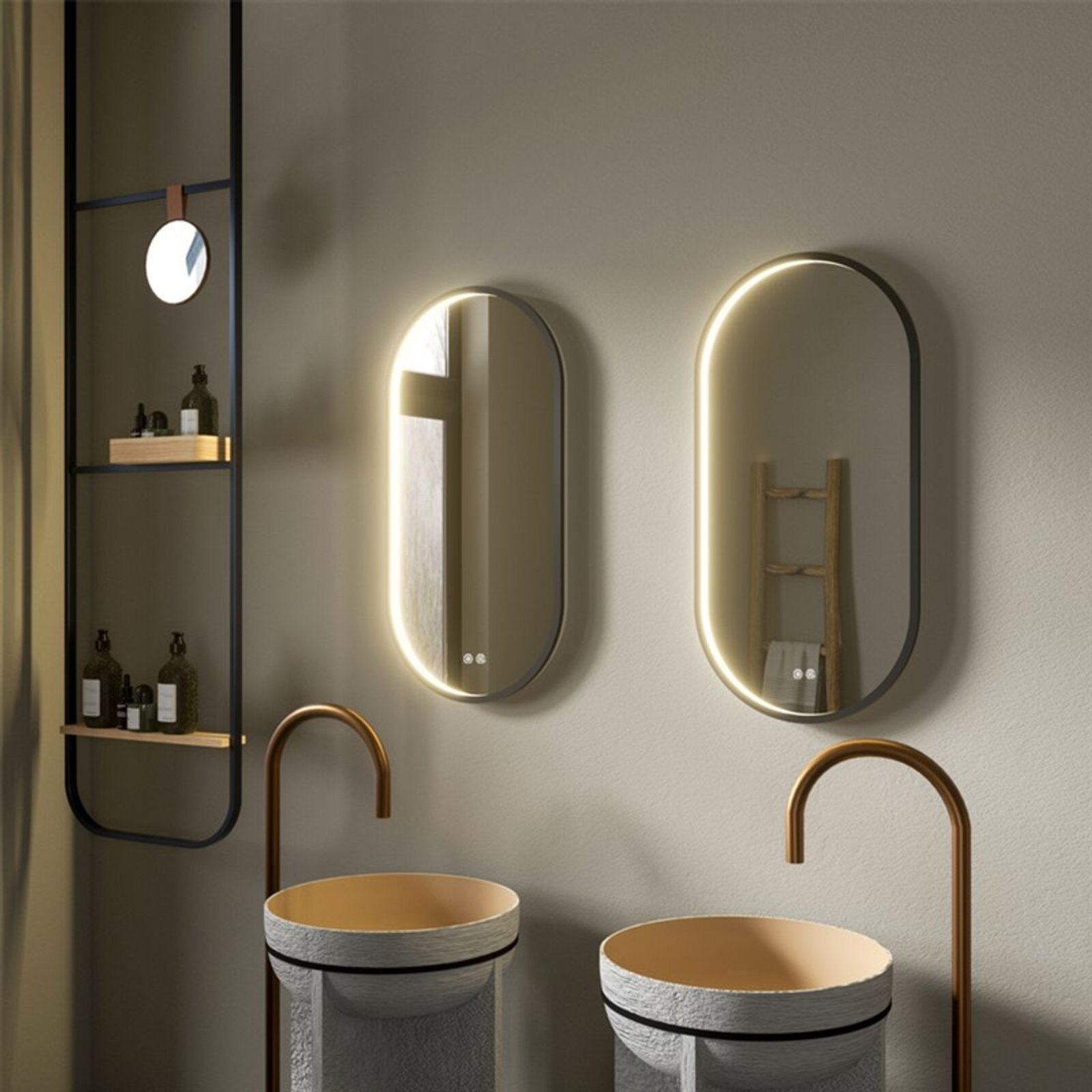 Zrcadlo EBS Emilia 50 oválné, s LED osvětlením a senzorem, černý rám, EMILIAZ5080PLEDB