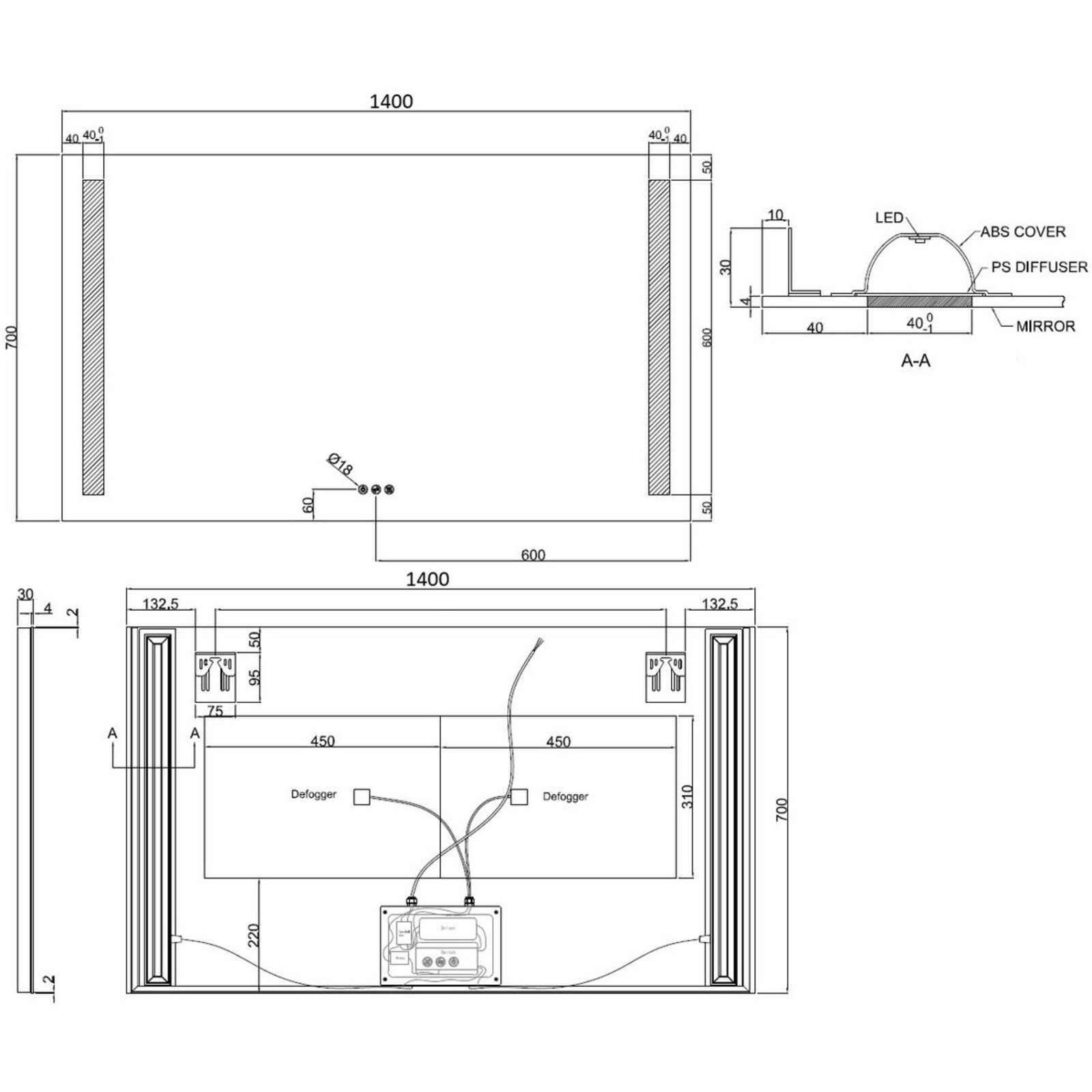 Funkční a elegantní zrcadlo ze série Mars disponují 3 ovládacími tlačítky: pro zapnutí/vypnutí osvětlení, změnu barvy osvětlení a pro ztlumení/rozjasnění., Zrcadlo tím dodává nádech modernosti a luxusu do celé koupelny a zároveň zaručuje pohodlné užívání. Zrcadlo bez mědi s bezpečnostní fólií, energetická třída E. Single Touch Switch tlačítka pro ovládání: paměťové funkce, zapnutí/vypnutí, změna barev a stmívání. Odmlžování skla na ploše 400 x 450mm - odmlžování se automaticky vypíná po 60 minutách.