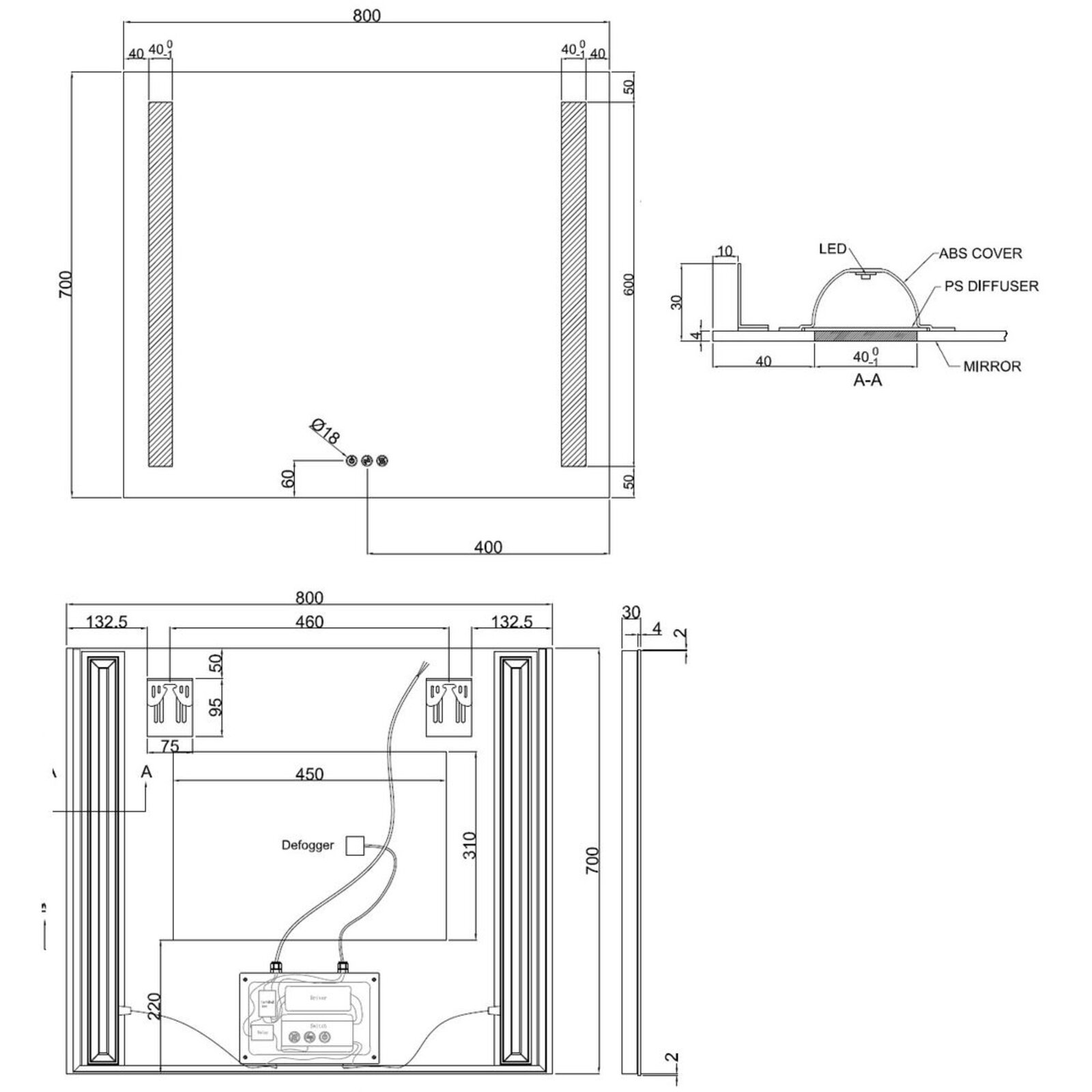 Funkční a elegantní zrcadlo ze série Mars disponují 3 ovládacími tlačítky: pro zapnutí/vypnutí osvětlení, změnu barvy osvětlení a pro ztlumení/rozjasnění., Zrcadlo tím dodává nádech modernosti a luxusu do celé koupelny a zároveň zaručuje pohodlné užívání. Zrcadlo bez mědi s bezpečnostní fólií, energetická třída E. Single Touch Switch tlačítka pro ovládání: paměťové funkce, zapnutí/vypnutí, změna barev a stmívání. Odmlžování skla na ploše 400 x 450mm - odmlžování se automaticky vypíná po 60 minutách.