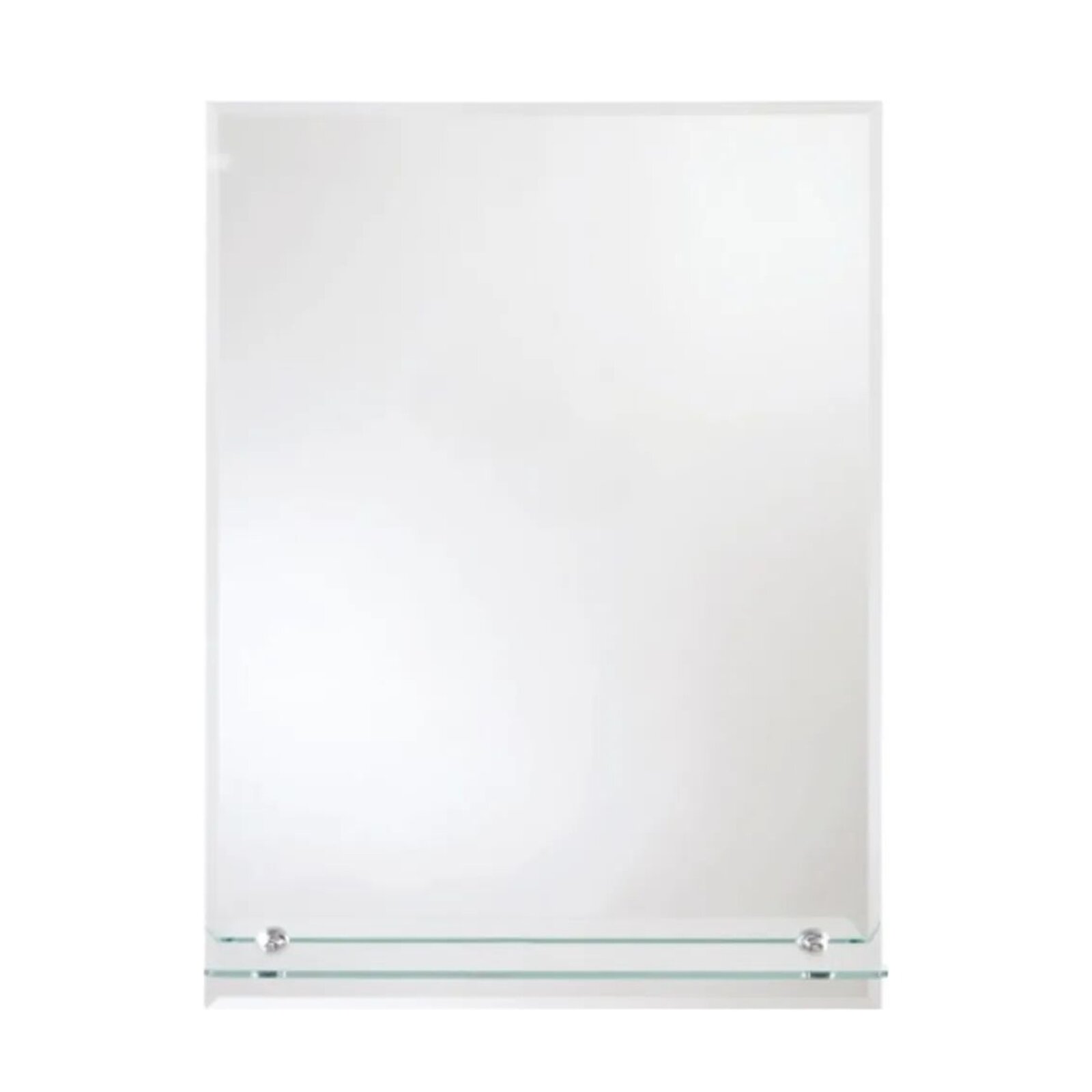 Zrcadlo o síle 4 mm lemované fazetou širokou 10 mm, vybavené poličkou o rozměrech 50 x 12 cm ze skla silného 5 mm s leštěnou hranou. Součástí jsou 2 úchyty pro svislé zavěšení, rozteč úchytů 32 cm.