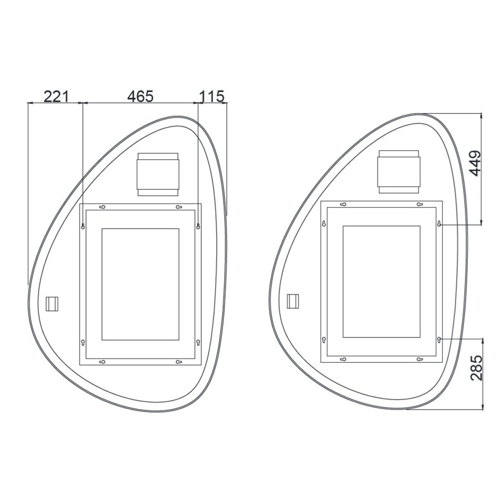 Zrcadlo EBS Pluto 120 asymetrické, s LED osvětlením na dotykové tlačítko, PLUTOZ12080