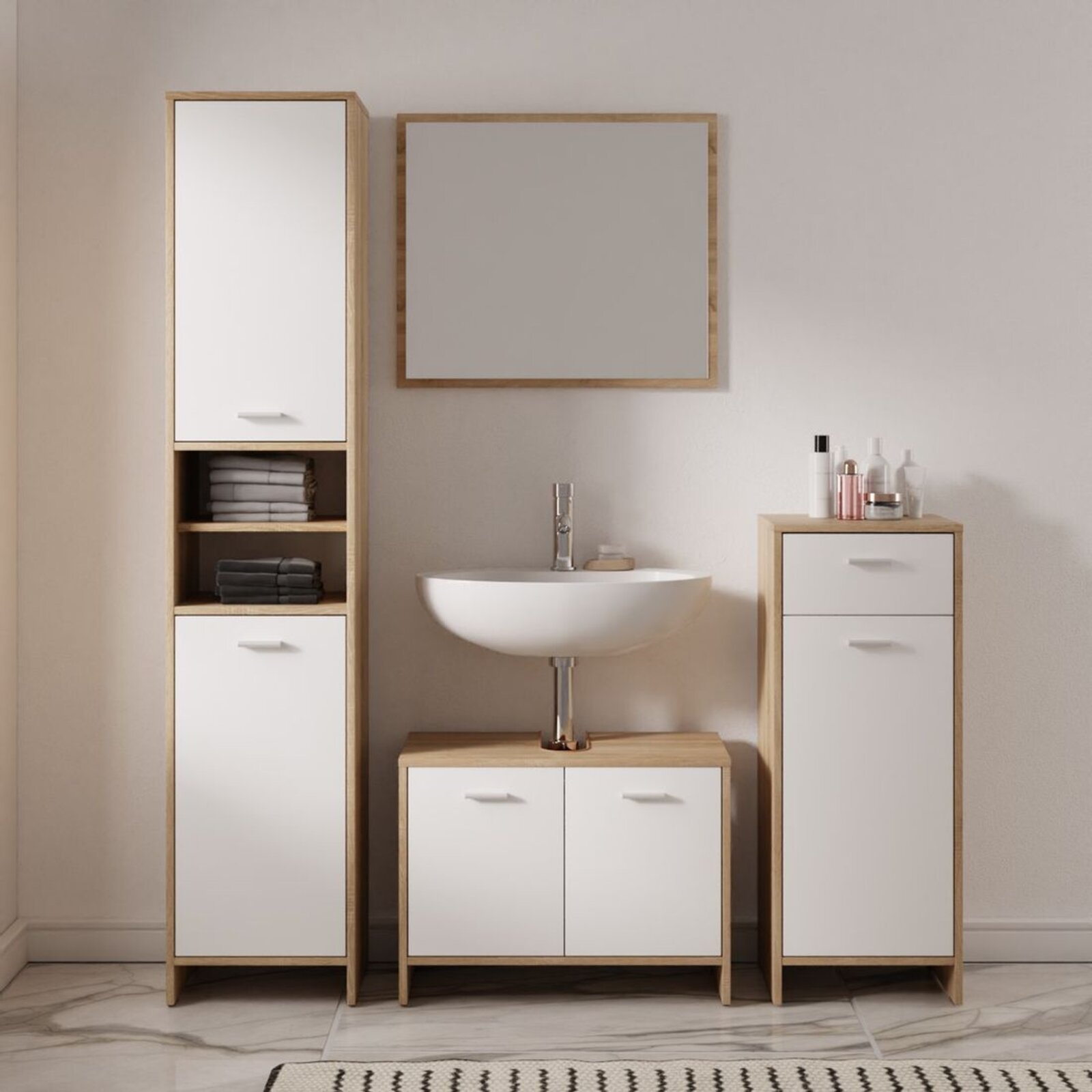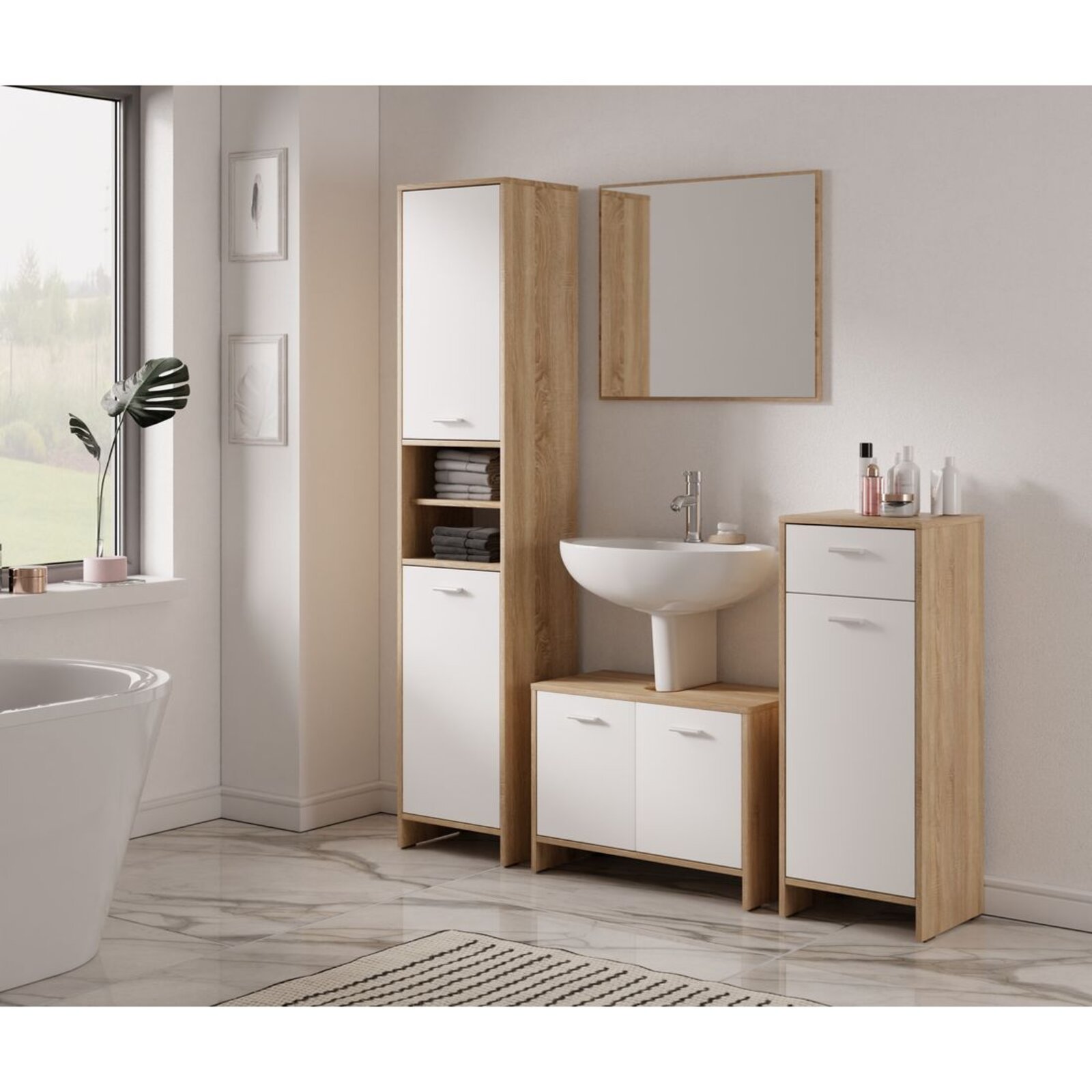 Materiál: lamino - tloušťka 16 mm, s melaminovou hranou. 2 dvířka se 2 policemi po celé šířce. Tlumení zavření nalepovací silikonovou čočkou. Jemný a decentní nábytek ze série Sofie nabízí k výběru 2 odstíny: bílá a dub sonoma. Skříňky jsou dodávané nesmontované (demont), pro snazší transport. Galerky ze série Sofie jsou praktickým a účelným řešením pro Vaši koupelnu. Tyto skříňky nabízejí dostatek úložného prostoru pro Vaše hygienické potřeby, kosmetiku, ručníky nebo čistící prostředky a zároveň také poslouží jako zrcadlo.