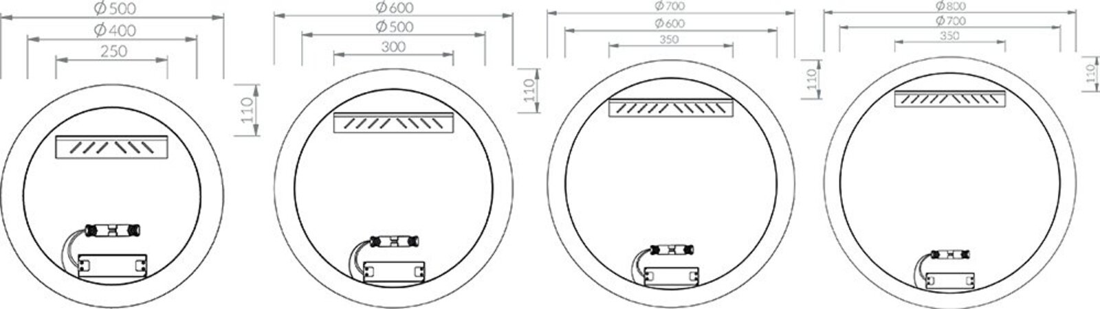 Zrcadlo je vybaveno bočním LED osvětlením a připraveno k připojení k napájecímu napětí 230 V. Instaluje se zavěšením na zeď.