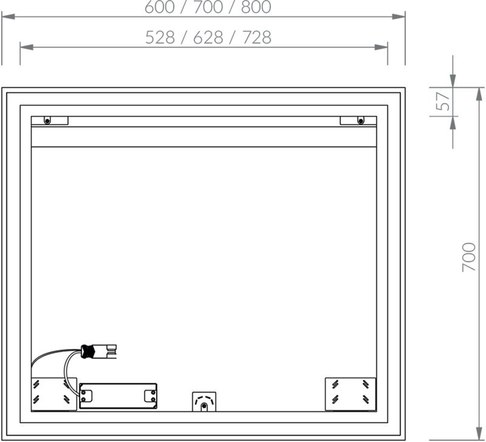 Zrcadlo je vybaveno bočním LED osvětlením a připraveno k připojení k napájecímu napětí 230 V. Instaluje se zavěšením na zeď.