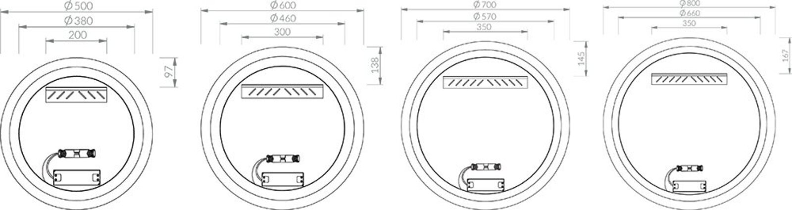 Zrcadlo je vybaveno bočním LED osvětlením a připraveno k připojení k napájecímu napětí 230 V. Instaluje se zavěšením na zeď.