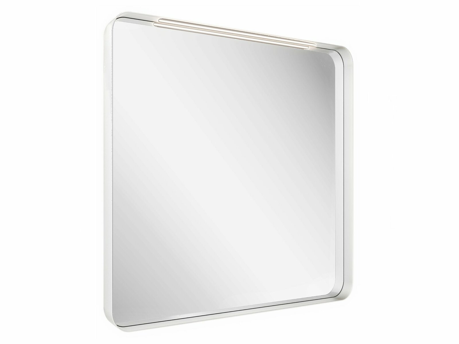 Obdélníkové zrcadlo s tenkým rámem v bílém provedení. Vybavené LED osvětlením.- rozměry (šxvxh): 80,6 x 70,6 x 6,5 cm
