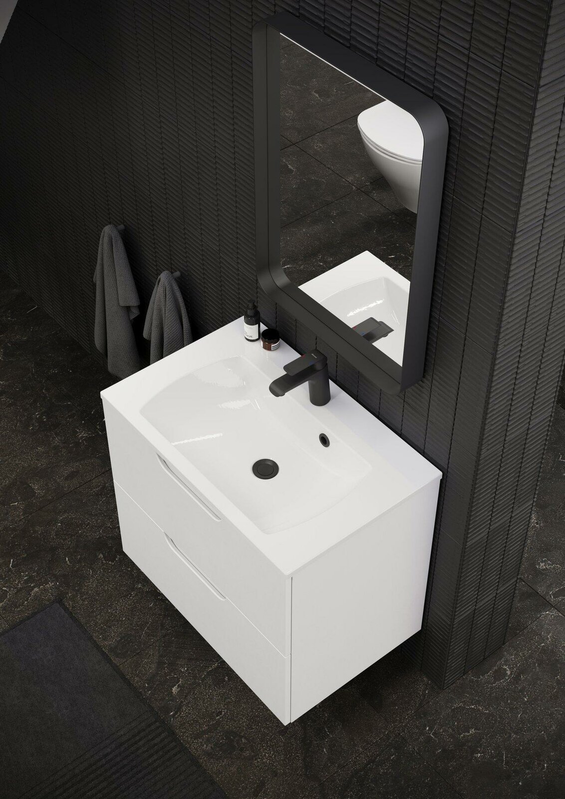 Obdélníkové zrcadlo s tenkým rámem v černém provedení. Vybavené LED osvětlením.- rozměry (šxvxh): 90,6 x 70,6 x 6,5 cm