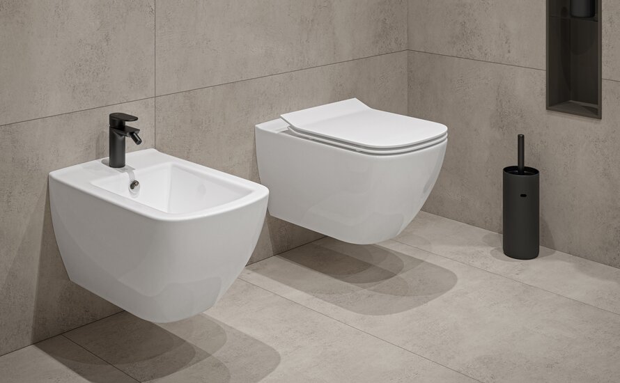 Při výběru toalety dbejte na umístění odpadu. Je vyveden zadem nebo spodem? Odkud vede napouštění? Na všechno tohle musíte předem znát odpověď. Vybírat můžete ze závěsných klozetů nebo klasických k podlaze upevněných mís. Kromě tohoto základního rozlišení si taky můžete vybrat tvar mísy. Nemusíte se držet oválné klasiky, k dispozici jsou i mísy hranaté. Pokud si chcete pořídit i bidet, nabídka je také široká.
